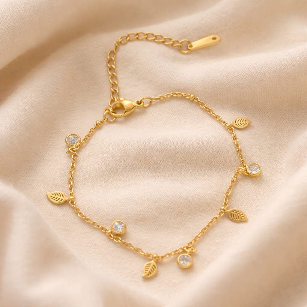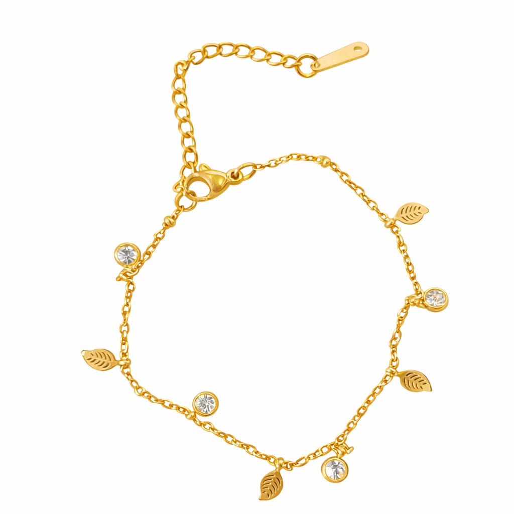 Golf Leaf Stone Bracelet Crafted with precision for the discerning collector, this bracelet combines natural stone elements with a refined golf-leaf motif. The design balances understated elegance with contemporary styling, making it equally suited for everyday wear or layered with complementary pieces. Premium materials ensure durability without compromising on aesthetic appeal. A versatile addition to any curated jewelry collection.