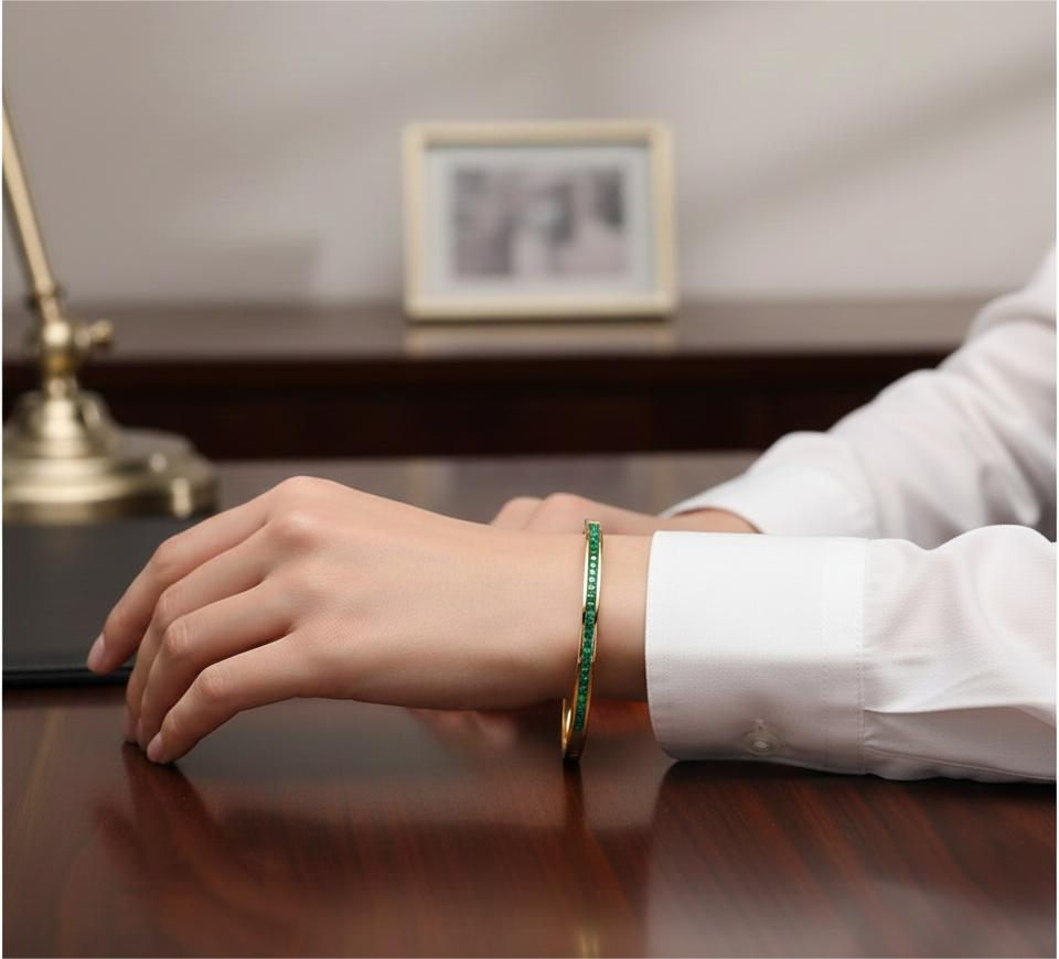 Crafted with precision, this emerald slim line bracelet showcases the timeless elegance of natural emerald stones set in a refined linear design. The slender profile makes it versatile enough for everyday wear while maintaining sophisticated appeal. Emeralds are prized for their rich green hue and are believed to symbolize renewal and clarity. This piece combines classic gemstone beauty with contemporary minimalist styling, making it an excellent addition to any jewelry collection or a meaningful gift for someone special.