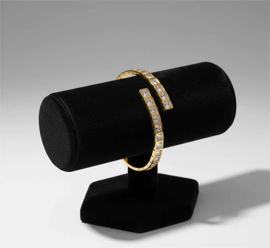 Elevate your wrist with the Gleam Cube Bangle, a striking piece that merges contemporary geometry with timeless elegance. Crafted with precision, this bangle features a distinctive cubic design that catches light beautifully, creating an eye-catching shimmer with every movement. The smooth, polished finish ensures comfort during extended wear, while its versatile aesthetic complements both casual and formal ensembles. A sophisticated addition to any jewelry collection, this bangle makes a confident statement without overwhelming your overall look.