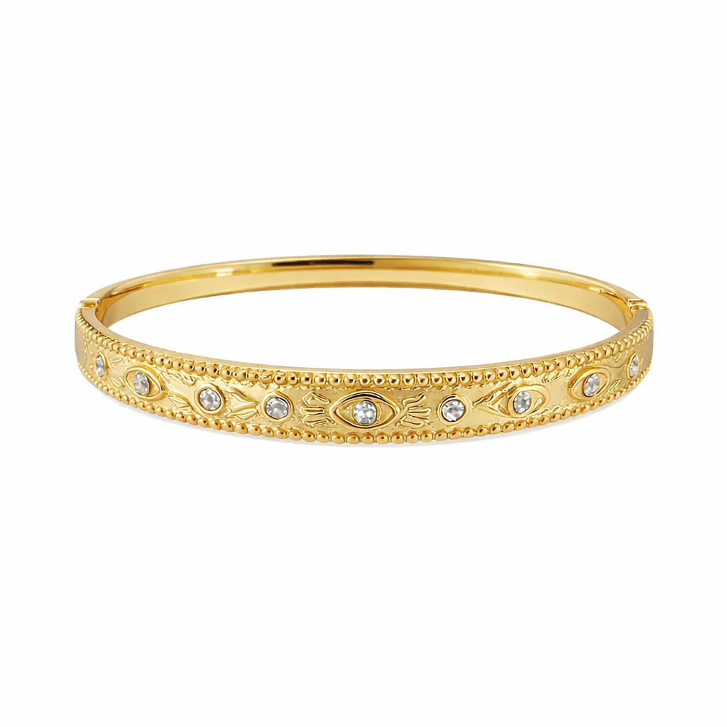 Elevate your wrist with this sophisticated gold embellished bracelet, designed for the discerning collector. Crafted with premium metalwork and refined detailing, this piece seamlessly transitions from day to evening wear. The lustrous gold finish catches light beautifully, while thoughtful embellishments add visual depth without overwhelming the wrist. Perfect as a standalone statement or layered with complementary pieces for a curated, modern-luxe aesthetic. A timeless investment that complements both minimalist and maximalist styling approaches.