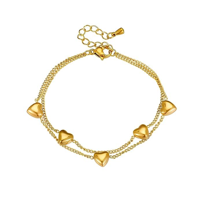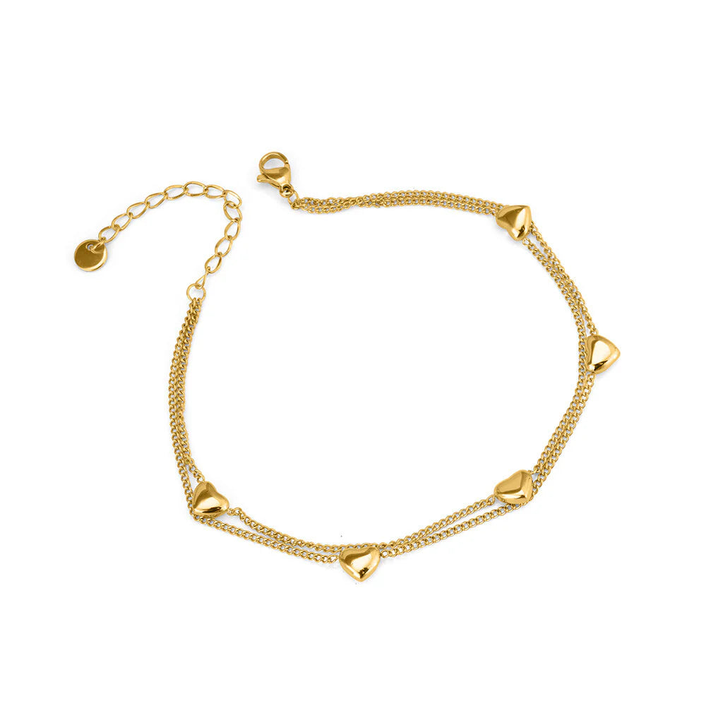 Delicate gold-plated heart beads strung on a fine chain create an understated yet striking bracelet perfect for layering or wearing solo. Each heart bead catches light beautifully, adding dimension to your wrist stack. The secure clasp ensures reliable wear through daily activities, while the lightweight design makes it comfortable for all-day styling. A versatile staple that transitions seamlessly from casual to occasion wear.