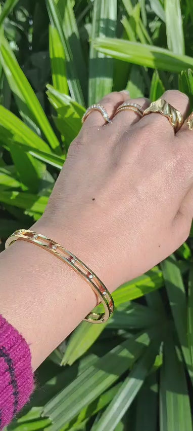 Elevate your everyday elegance with this refined stone stud bracelet. Featuring carefully selected gemstone studs set in a minimalist design, this piece strikes the perfect balance between understated sophistication and timeless appeal. The clean lines and subtle sparkle make it versatile enough for both casual wear and professional settings. A wardrobe essential that speaks volumes through its restraint, this bracelet pairs seamlessly with other jewelry pieces or stands beautifully on its own. Crafted for those who appreciate quality craftsmanship and contemporary aesthetics.