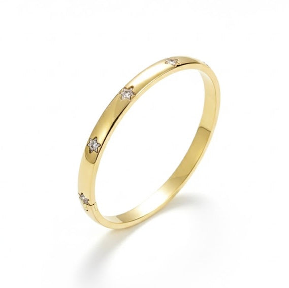 # Star Glow Band Celestial elegance meets everyday wear in this luminous band ring. Crafted with precision, the Star Glow Band features a radiant star motif that catches light beautifully, making it an ideal choice for those seeking understated luxury with cosmic inspiration. The sleek design transitions seamlessly from day to evening, while its thoughtful construction ensures lasting comfort. Perfect as a standalone statement or layered with complementary pieces from your collection, this band brings a touch of celestial sophistication to any jewelry ensemble.