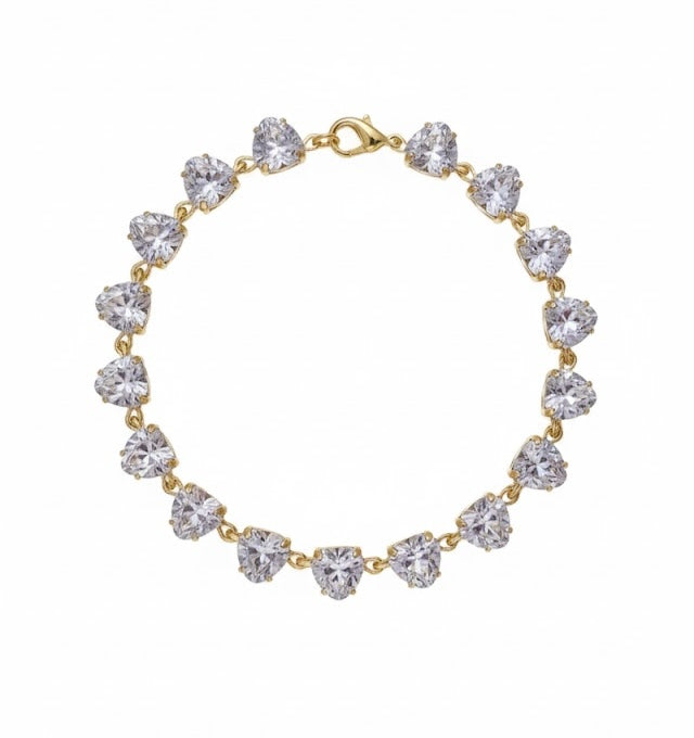 Stone glass heart bracelet featuring delicate heart-shaped glass elements set in a refined design. Each piece combines natural stone accents with translucent glass hearts, creating a balanced aesthetic that transitions seamlessly from day to evening wear. The bracelet offers a contemporary take on romantic jewelry, with smooth glass surfaces that catch light beautifully. Ideal for layering with other bracelets or wearing as a standalone statement piece. Crafted for durability and comfort, this design appeals to those seeking meaningful, versatile jewelry with understated elegance.