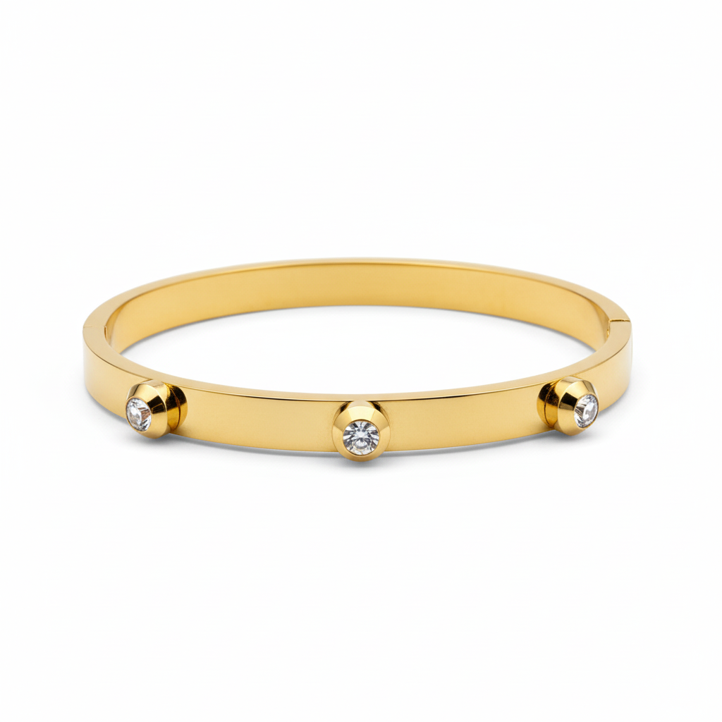 Elevate your wrist with this sophisticated cubic zirconia stud bracelet, a timeless piece that combines brilliance with understated elegance. Each precisely cut stone catches light beautifully, delivering diamond-like sparkle at an accessible price point. The secure stud setting ensures durability for everyday wear, while the classic design complements both casual and formal occasions. Perfect for layering or wearing solo, this bracelet offers versatile styling options for the discerning jewelry enthusiast. An investment in quality craftsmanship that transcends seasonal trends.