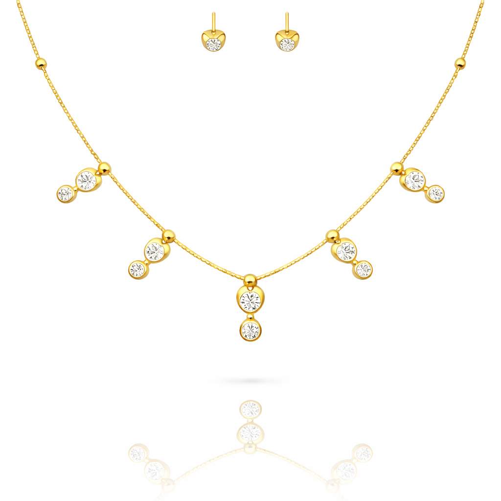 Elevate your everyday elegance with this refined crystal crown and heart necklace paired with matching earrings. Crafted with precision, the delicate crown motif sits gracefully atop a polished heart pendant, creating a sophisticated silhouette that speaks to modern luxury. The accompanying earrings echo the design's regal aesthetic, ensuring a cohesive, curated look. Perfect for layering or wearing as a standalone statement piece, this set combines timeless symbolism with contemporary craftsmanship. Ideal for those who appreciate jewelry that balances understated glamour with meaningful design.