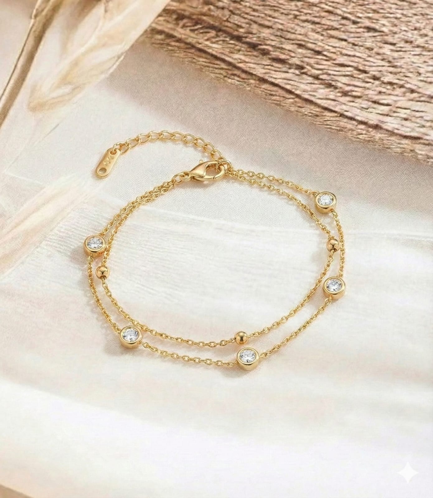 Double Layer Stone Stud Bracelet Elevate your everyday elegance with this sophisticated double-layer design, featuring carefully selected stone studs that catch light with understated brilliance. The dual-strand construction creates dimensional depth while maintaining a refined, minimalist aesthetic—perfect for layering or wearing solo. Crafted for those who appreciate jewelry that speaks through craftsmanship rather than excess, this bracelet transitions seamlessly from boardroom to evening occasions. The stone detailing adds tactile interest and visual intrigue without compromising the clean, editorial sensibility that defines premium jewelry. An investment piece that anchors any collection.