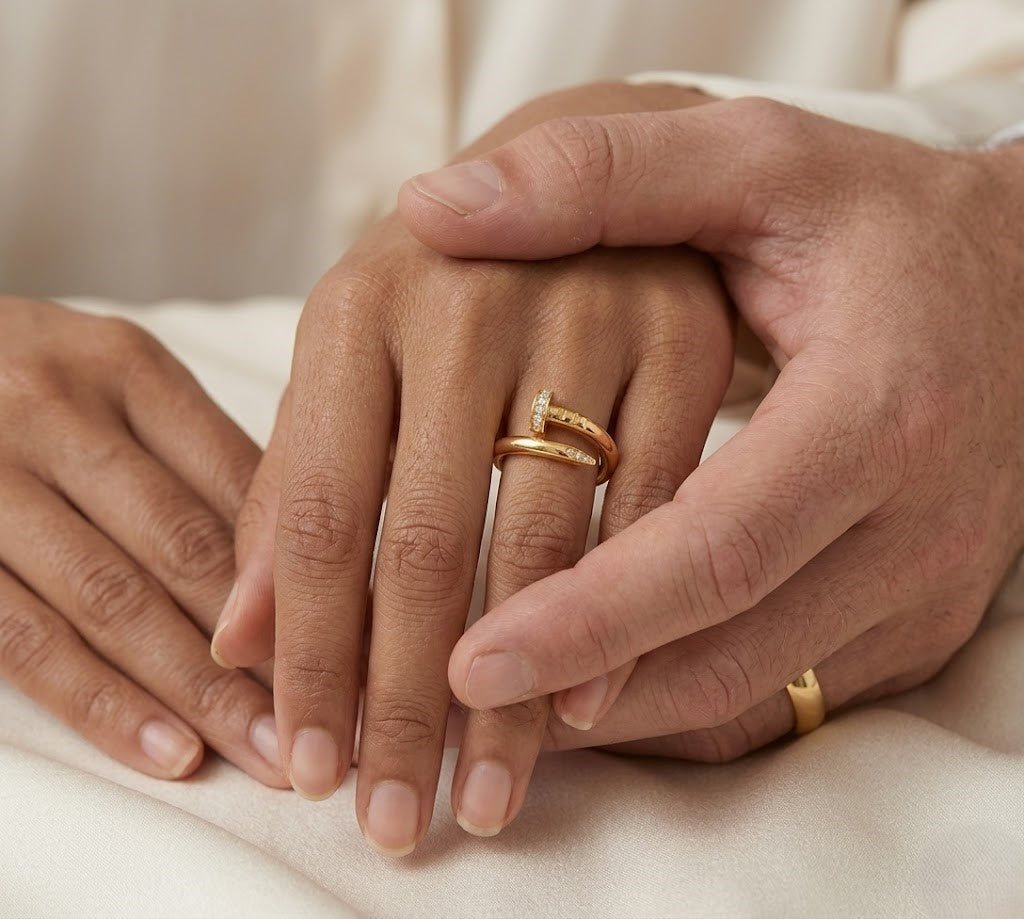This Nail Studded Ring combines edgy design with refined craftsmanship, featuring meticulously arranged studs that add texture and dimension. Crafted to provide a comfortable fit, it serves as a bold statement piece that elevates any ensemble with a modern, sophisticated edge. Ideal for those seeking distinctive accessory options without compromising on wear ability.