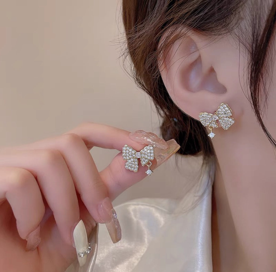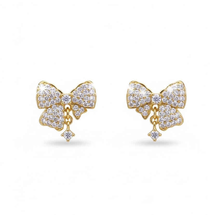 Bow-shaped crystal drop Earrings