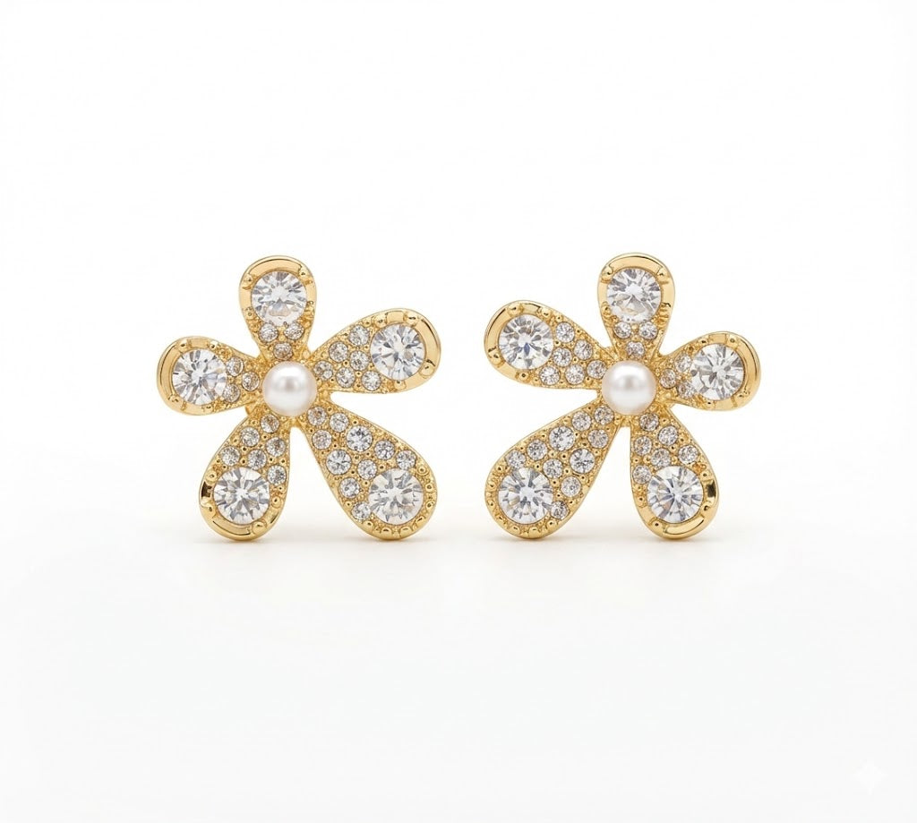 Crystal Sparkle Flower Earring Delicate floral design meets radiant sparkle in these expertly crafted earrings. Each piece features precision-cut crystals that catch and reflect light with exceptional clarity, creating a luminous effect that elevates any occasion. The flower motif brings organic elegance to your jewelry collection, while the superior crystal quality ensures lasting brilliance. Perfect for those who appreciate refined details and timeless botanical aesthetics.
