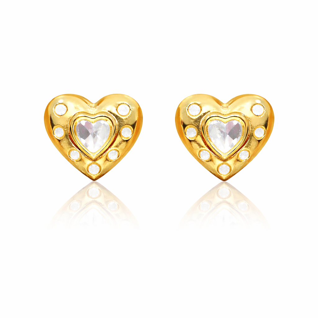 Delicate heart studs adorned with sparkling rhinestones that catch light with every movement. These timeless pieces combine understated elegance with just the right amount of glamour, making them perfect for both everyday wear and special occasions. The secure stud closure ensures they stay in place throughout your day, while the refined design complements any jewelry collection. A versatile essential that elevates any look with subtle sophistication.