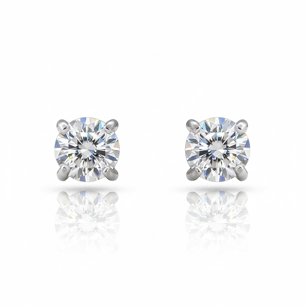 Refined diamond studs designed for modern luxury. These earrings feature precisely cut diamonds secured in a durable setting, offering the perfect balance of understated elegance and lasting quality. Ideal for layering with other pieces or wearing solo, they transition seamlessly from professional settings to evening occasions. The timeless silhouette ensures they remain a cornerstone of your jewelry wardrobe for years to come, complementing both minimalist and curated aesthetic preferences.
