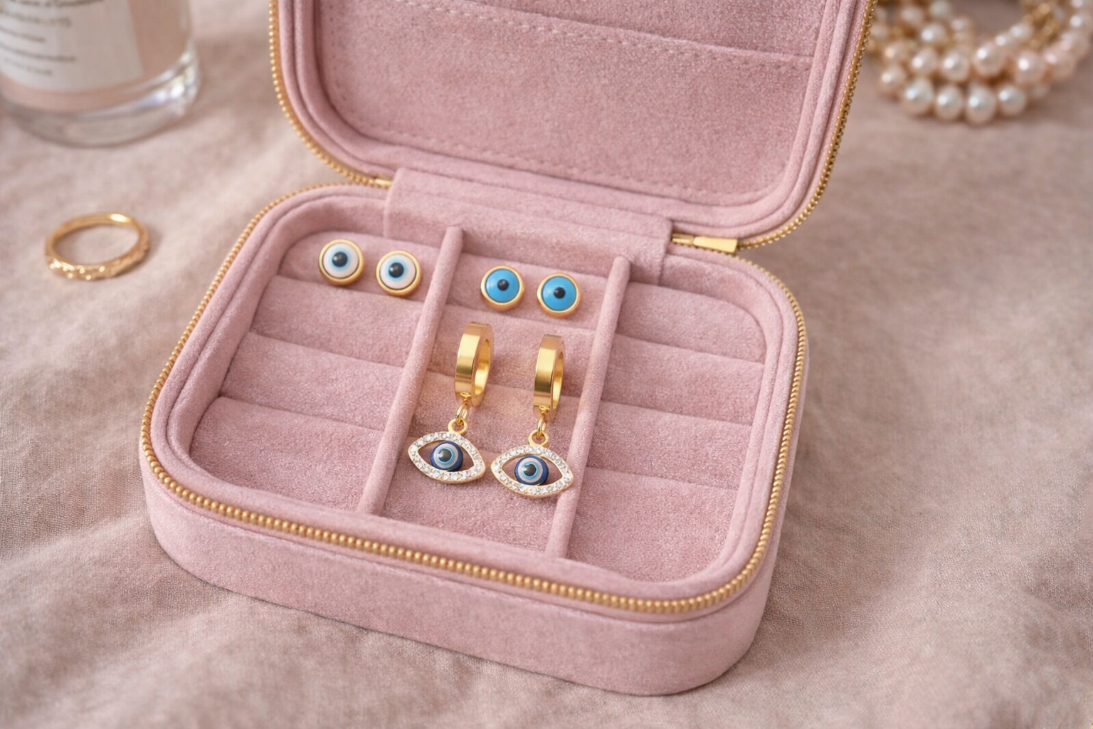 Evil eye earrings have been cherished across cultures for centuries as symbols of protection and positive energy. This curated set combines traditional symbolism with contemporary design, featuring hand-selected pieces that showcase intricate detailing and quality craftsmanship. Each pair in the collection is designed to layer seamlessly with your existing jewelry or stand alone as a statement piece. The varied styles within the set allow you to transition effortlessly from everyday wear to special occasions, while the timeless evil eye motif ensures enduring appeal. Perfect for those who appreciate meaningful jewelry with both aesthetic and spiritual significance.