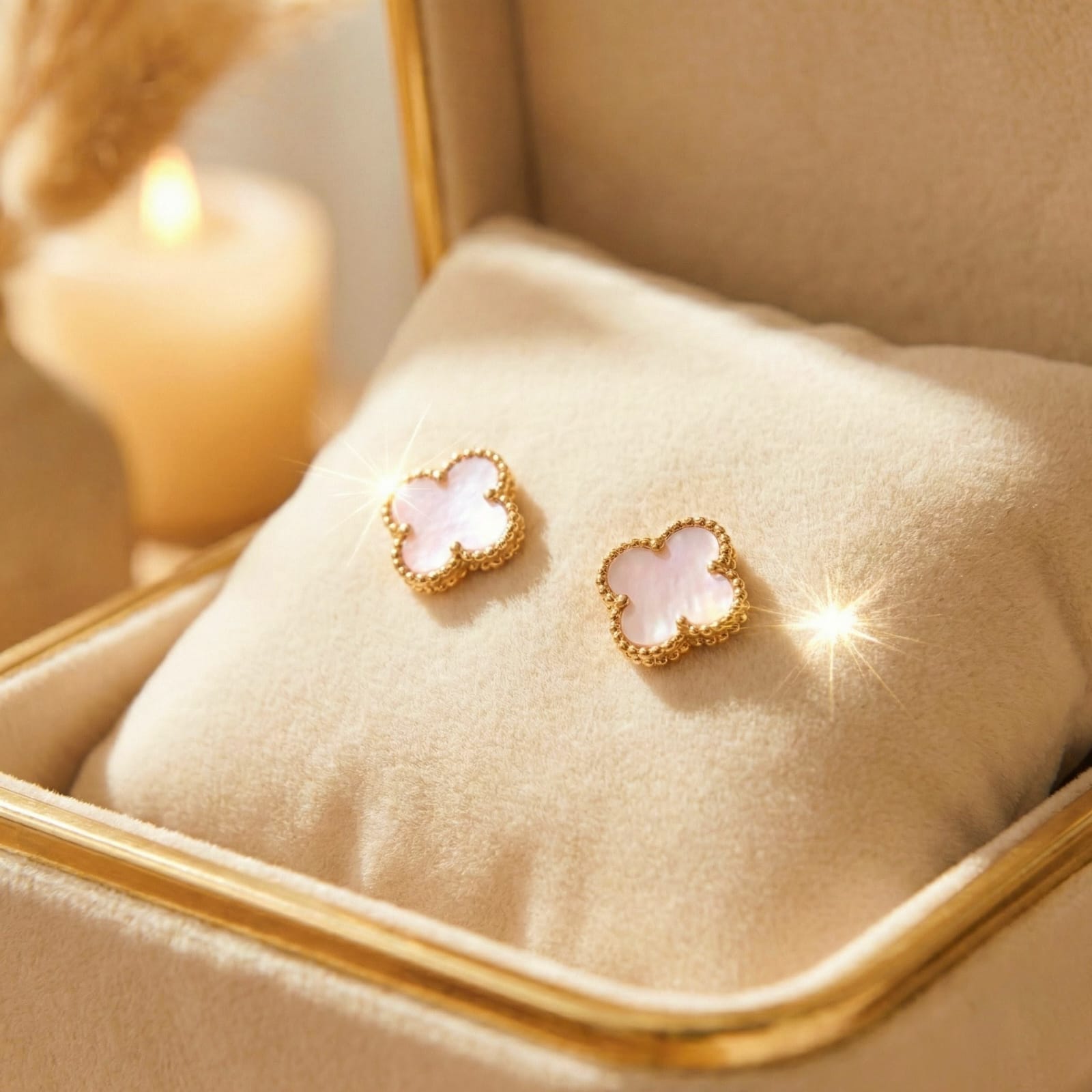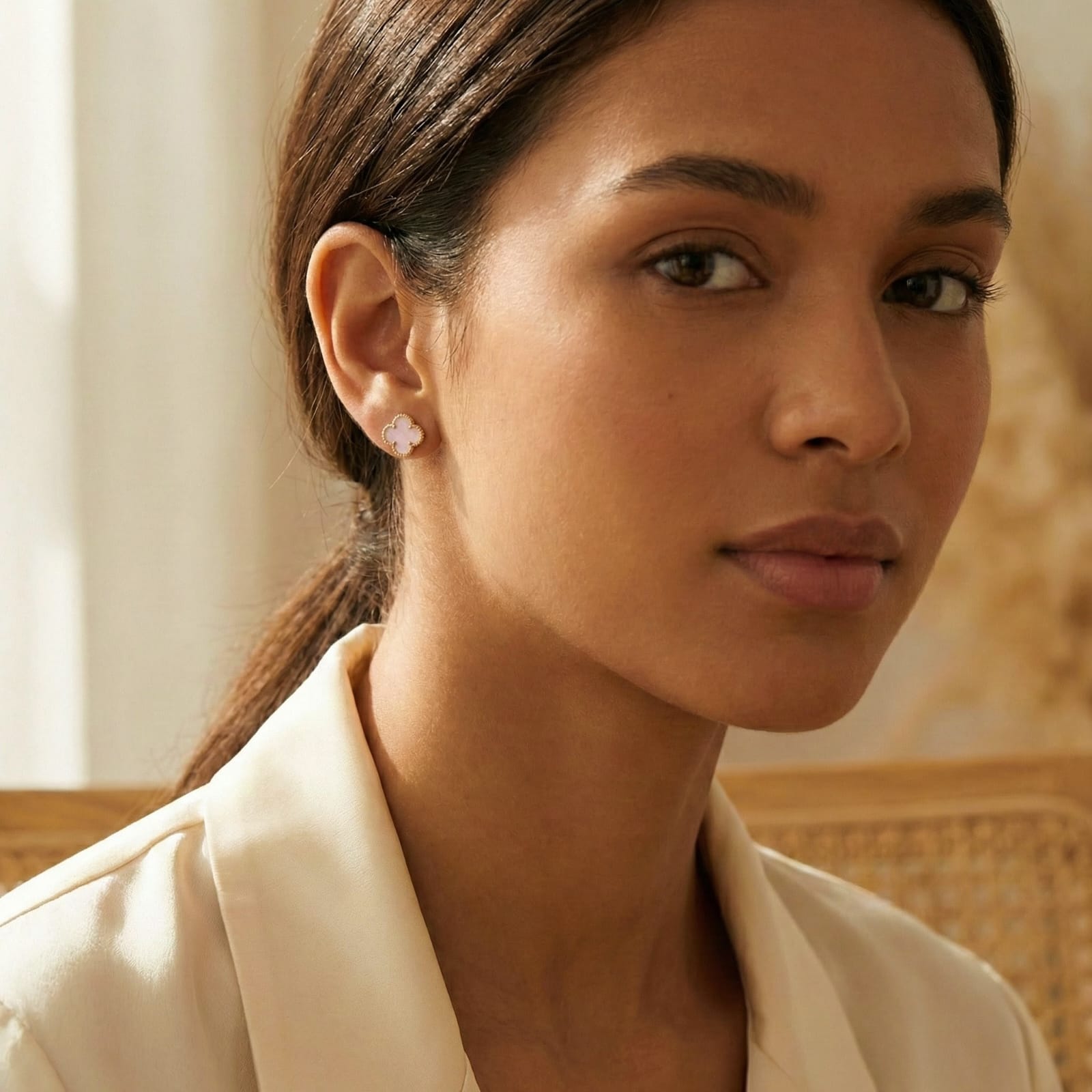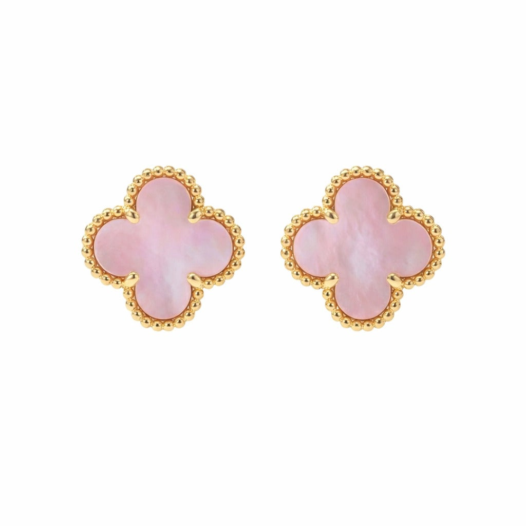 Delicate four-leaf clover studs crafted with marble-effect pink resin, offering a refined take on a timeless symbol of luck. Each earring features smooth, polished surfaces that catch light subtly, making them versatile enough for everyday wear yet distinctive enough to elevate a curated look. Lightweight and comfortable for extended wear, these pieces complement both minimalist and statement-focused styling. Perfect for those seeking understated elegance with meaningful symbolism.