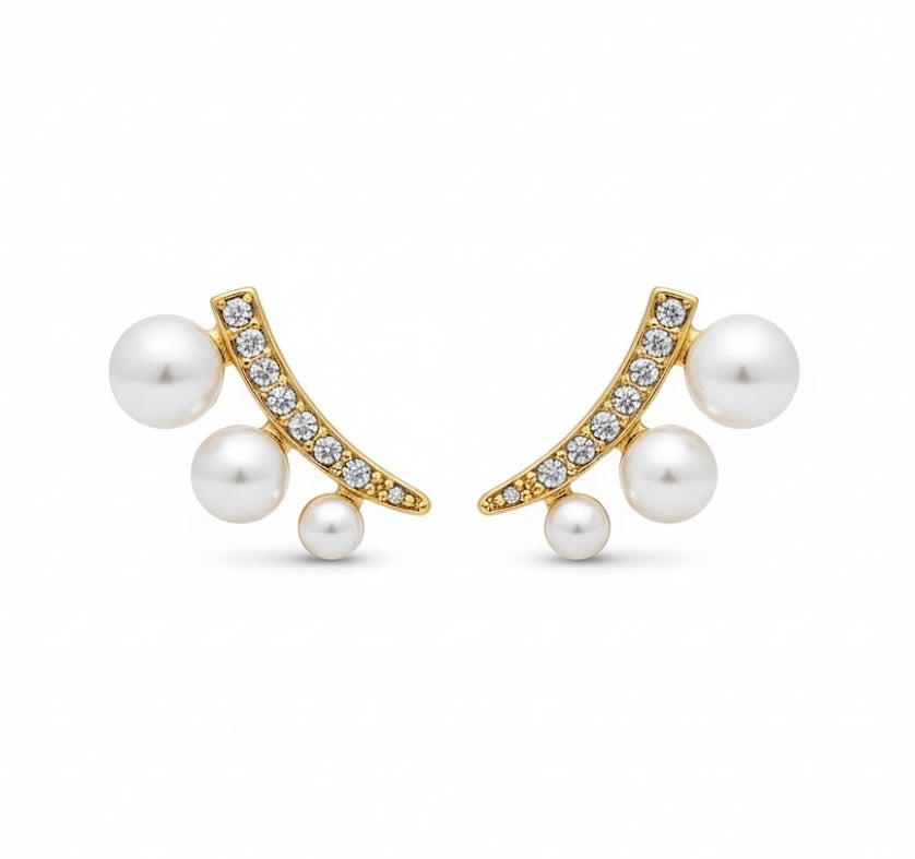 Pearl Drift Earrings capture understated elegance through luminous freshwater pearls suspended in a refined metal setting. Each piece showcases the natural variation and subtle iridescence that defines authentic pearl jewelry, creating a sophisticated accessory that transitions seamlessly from day to evening wear. The delicate design emphasizes the pearl's organic beauty while maintaining the polished aesthetic House of Suniyara is known for. Perfect for those who appreciate timeless craftsmanship and the quiet luxury of genuine pearls.
