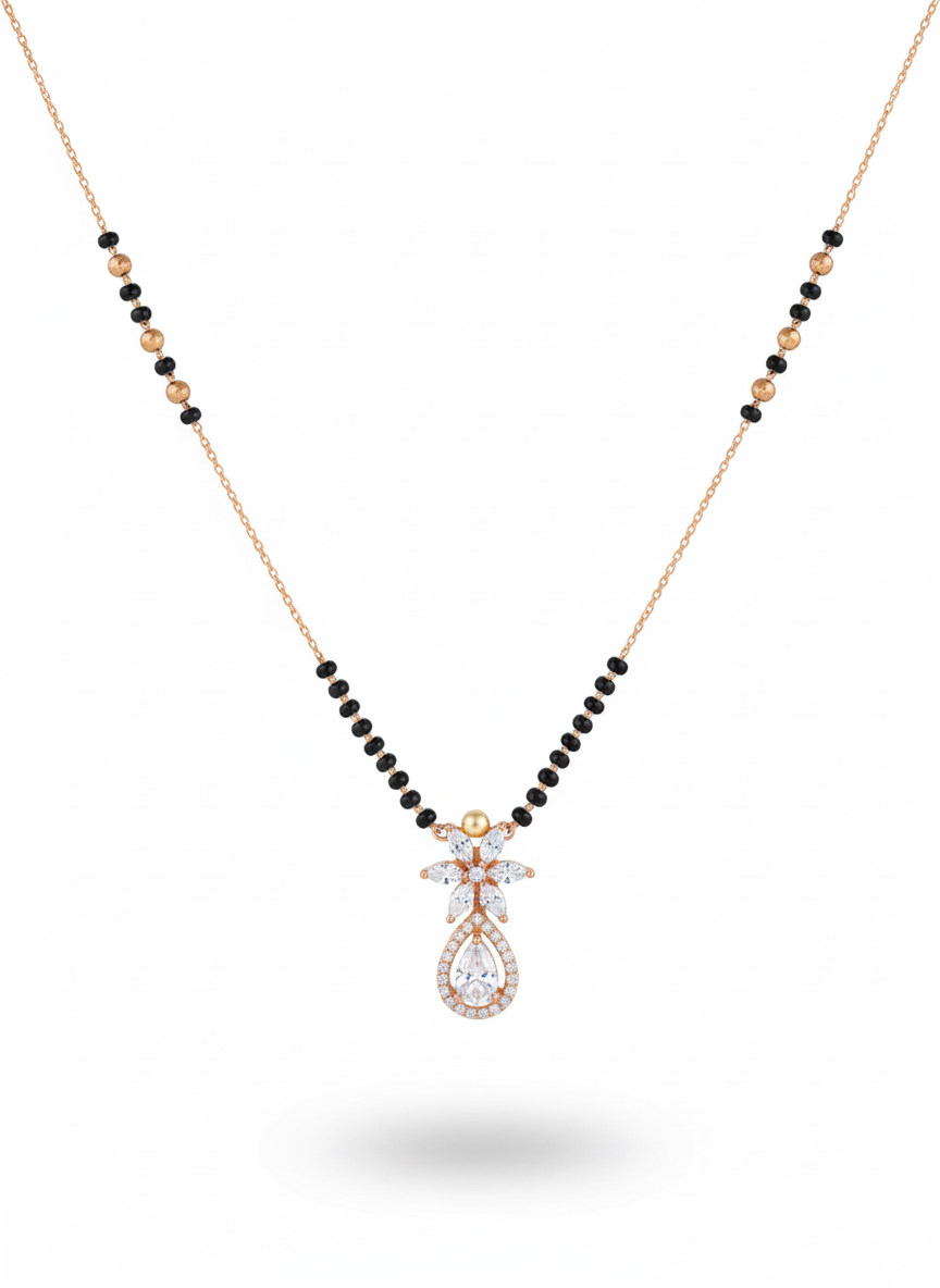 The Ahana Mangalsutra is a timeless symbol of marital grace, crafted with meticulous attention to traditional design principles. This elegant piece features a refined chain adorned with a distinctive pendant, embodying the cultural significance and aesthetic beauty that defines authentic mangalsutra jewelry. Perfect for brides seeking a sophisticated accessory that honors tradition while complementing contemporary styling, the Ahana combines classic craftsmanship with enduring elegance. An investment in meaningful jewelry that celebrates your most cherished moments.