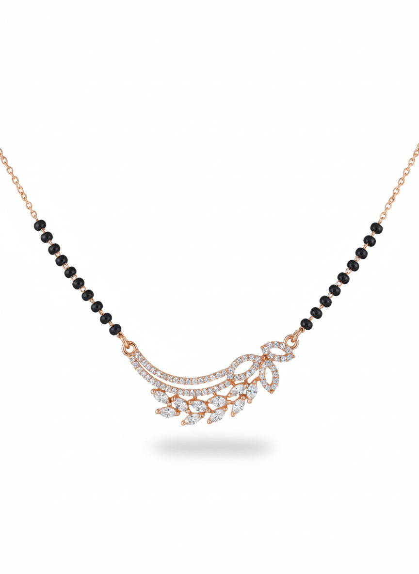 # Ritvi Mangalsutra The Ritvi Mangalsutra exemplifies timeless elegance with its refined design and superior craftsmanship. This traditional piece features meticulously balanced proportions, combining lustrous beads with intricately detailed metalwork that catches light beautifully. Each element is thoughtfully positioned to create a harmonious aesthetic that complements various necklines and occasions. The secure clasp mechanism ensures reliable wear, while the quality construction promises enduring beauty. Perfect for those who appreciate authentic jewelry that honors tradition while maintaining contemporary appeal, this mangalsutra serves as a meaningful symbol of grace and sophistication.