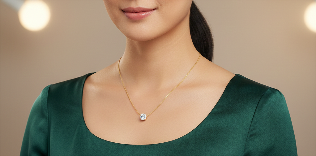 This Delicate Diamond Studded Necklace showcases expertly set diamonds that offer subtle brilliance, perfect for enhancing any ensemble with refined elegance. Its lightweight design ensures comfortable wear, making it an ideal choice for both everyday sophistication and special occasions. Crafted with precision, this necklace highlights the timeless allure of diamonds in a delicate, understated style.