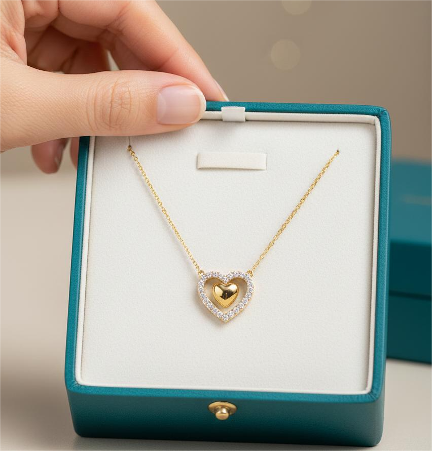 Delicate heart charms cascade gracefully along a refined chain, anchored by an elegant tassel that adds movement and sophistication. This necklace combines romantic symbolism with contemporary design, making it versatile enough for everyday wear yet striking enough for special occasions. The tassel detail creates visual interest and draws attention to the neckline, while the heart motifs speak to timeless elegance. Perfect for layering or wearing solo, this piece elevates any ensemble with understated luxury and thoughtful craftsmanship.