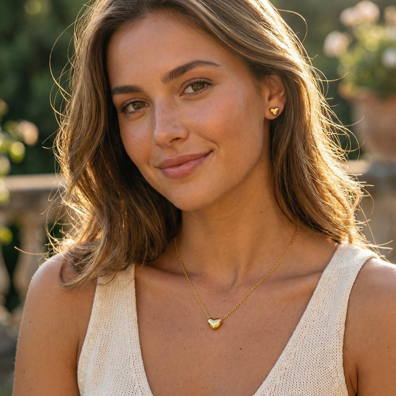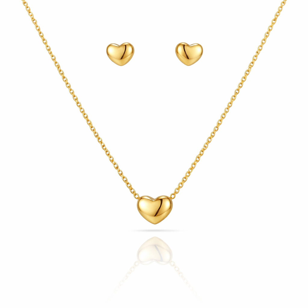 Dainty Gold Heart Necklace and Earrings