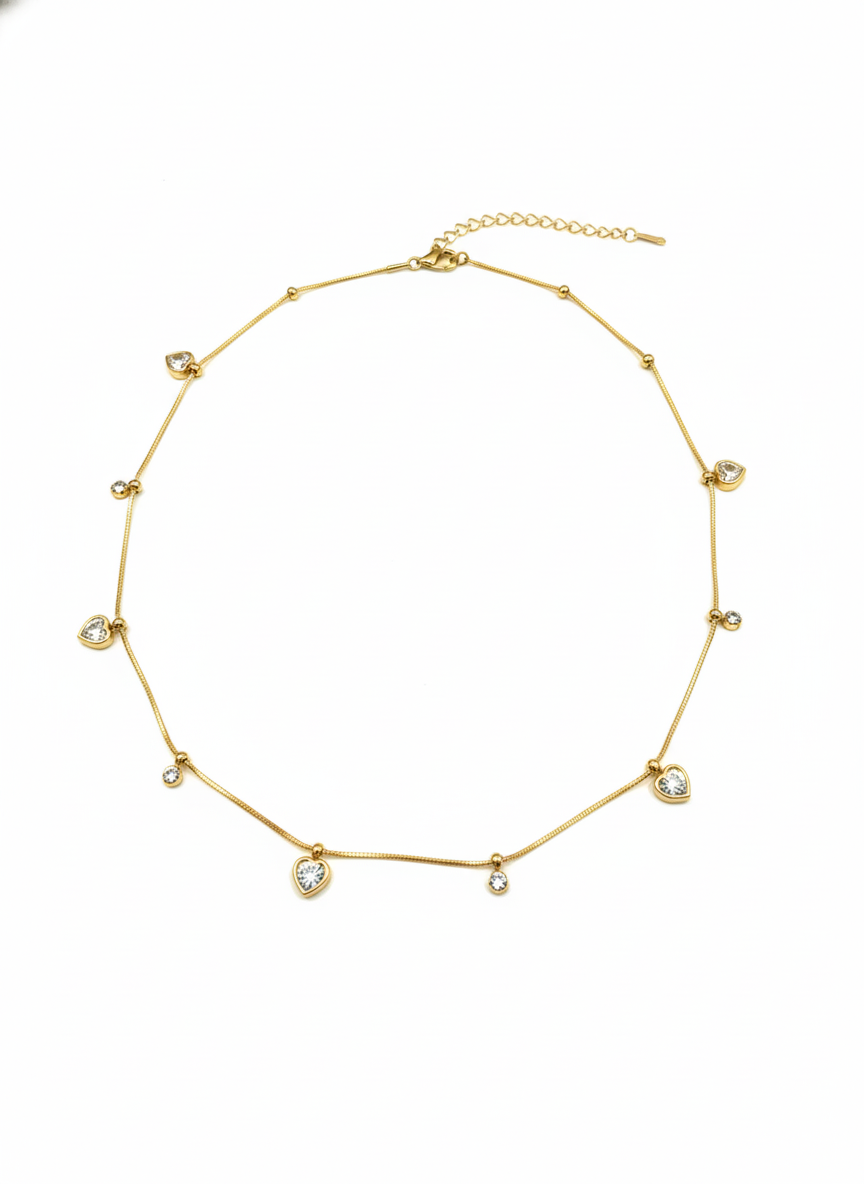 Solene Crystals Necklace Elevate your jewelry collection with this exquisite crystal necklace, meticulously crafted to capture light and draw admiration. Each crystal is thoughtfully selected and positioned to create a harmonious interplay of brilliance and elegance. The refined design works seamlessly as a standalone statement piece or layered with complementary jewelry for a curated, sophisticated look. Perfect for both special occasions and elevated everyday wear, this necklace embodies the craftsmanship and attention to detail that defines luxury jewellery. A timeless investment piece that transcends seasonal trends.