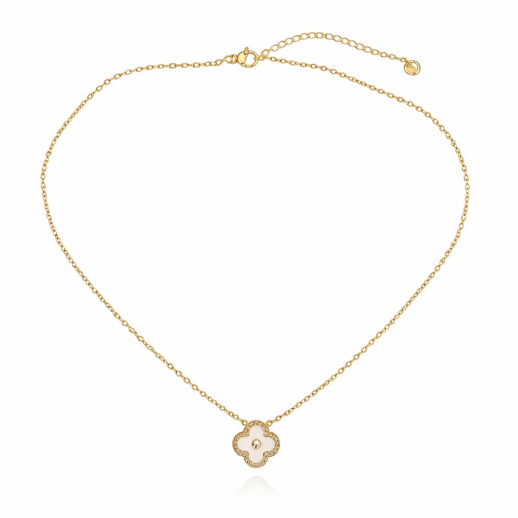 White Marble Clover Necklace Crafted with refined elegance, this necklace features a delicate clover pendant rendered in white marble, capturing natural veining that makes each piece subtly unique. The soft, luminous stone pairs seamlessly with premium metalwork, creating a versatile accessory that transitions effortlessly from everyday wear to special occasions. The clover motif brings understated symbolism of luck and grace, while the marble's cool tones complement all skin undertones. Perfect for layering or worn solo, this piece embodies the modern-luxe aesthetic that defines contemporary fine jewelry.