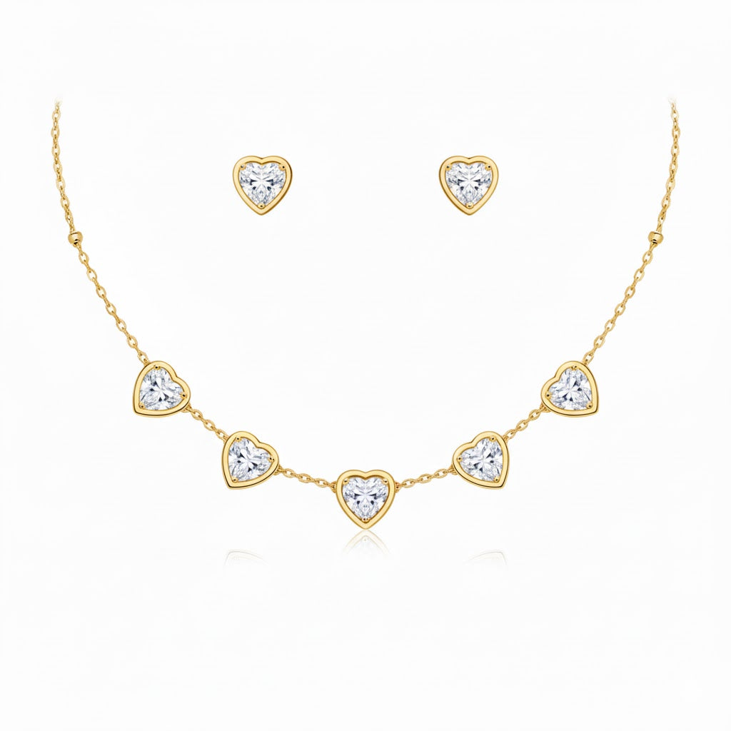 Elevate your everyday elegance with this refined heart necklace and earring set. Crafted with meticulous attention to detail, the delicate heart pendant captures light beautifully while the coordinating earrings ensure a cohesive, polished look. Perfect for layering or wearing solo, this versatile pairing transitions seamlessly from day to evening. An essential addition to any jewelry collection that celebrates understated luxury and timeless design.