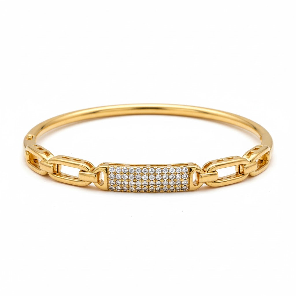 Elevate your wrist with this sophisticated gold-toned diamond link bracelet, where timeless elegance meets contemporary design. Each link features carefully selected diamonds that catch light with brilliant sparkle, creating a refined statement piece suitable for both everyday luxury and special occasions. The secure clasp ensures comfort and durability, while the polished gold tone complements all skin tones. A versatile investment that transcends trends, this bracelet pairs seamlessly with other jewelry or stands beautifully on its own.