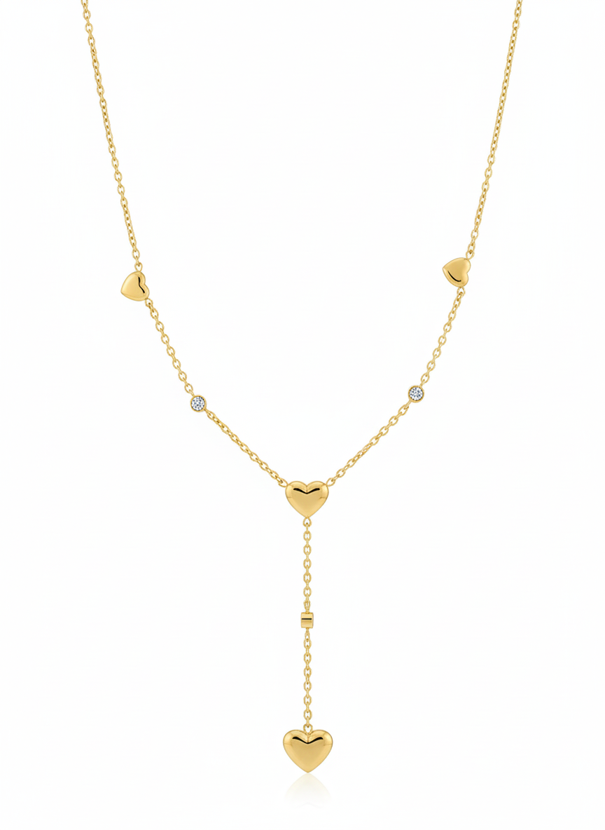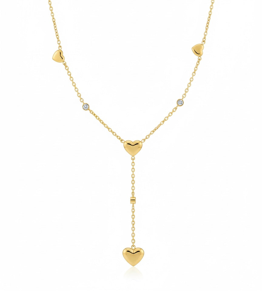 Delicate yet striking, the Heartstring Gold Necklace combines refined craftsmanship with timeless elegance. This piece features a gracefully suspended heart pendant suspended from a carefully engineered gold chain, designed to sit beautifully at the neckline. The balanced proportions and quality gold finish make it versatile enough for everyday wear while sophisticated enough for special occasions. A meaningful accessory that complements both casual and formal wardrobes with understated luxury.