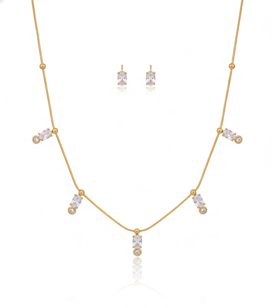 Elevate your jewelry collection with the Radiant Droplets set, a sophisticated pairing that combines timeless elegance with contemporary design. This necklace and earring ensemble features luminous droplet-shaped stones that catch light beautifully, creating a captivating sparkle with every movement. The coordinated design ensures seamless styling versatility—wear the pieces together for a polished statement look or separately to complement your everyday aesthetic. Crafted with attention to detail, this set delivers premium appeal without compromising on wearability, making it an essential addition for those who appreciate refined jewelry that transitions effortlessly from day to evening occasions.