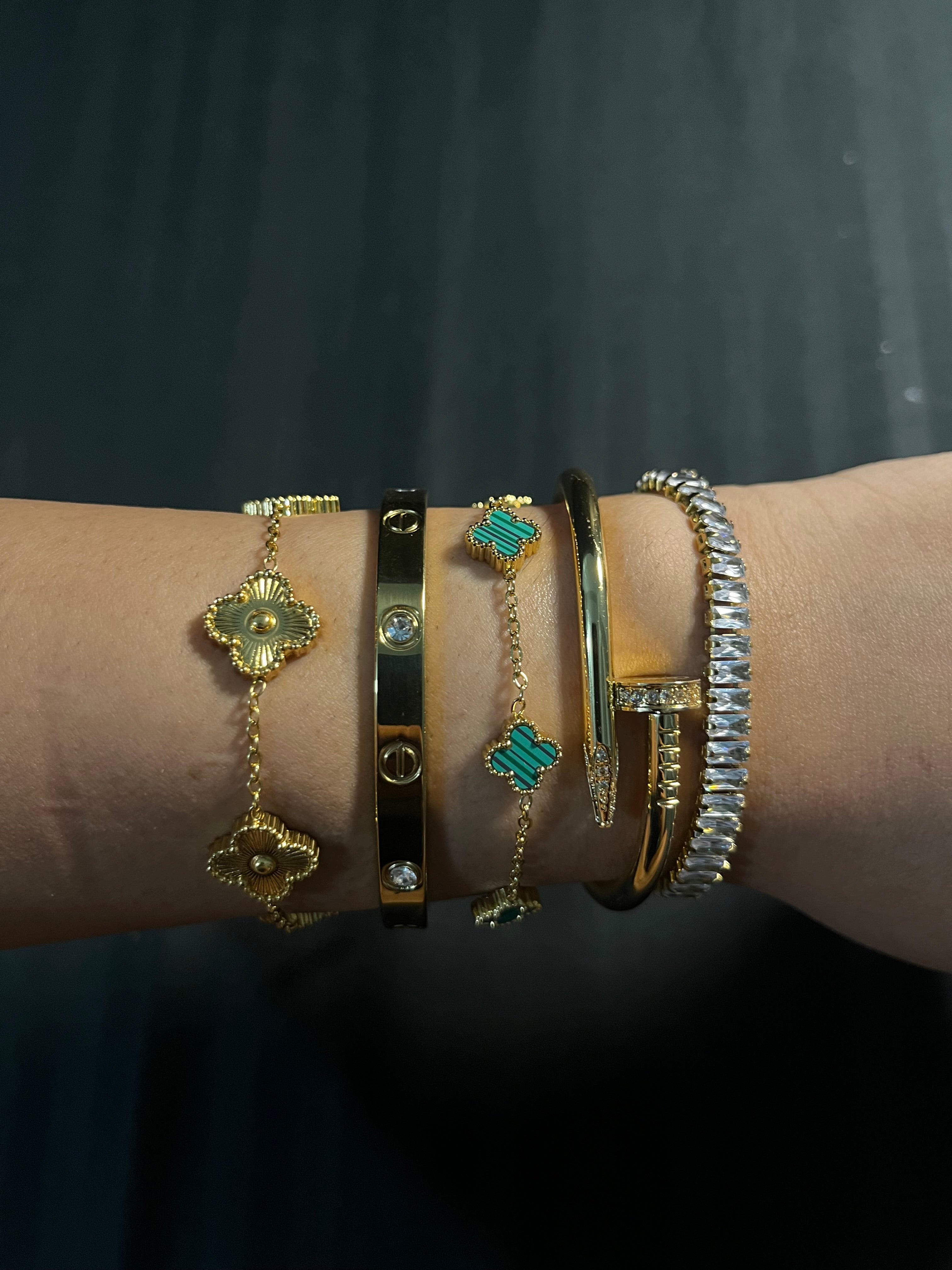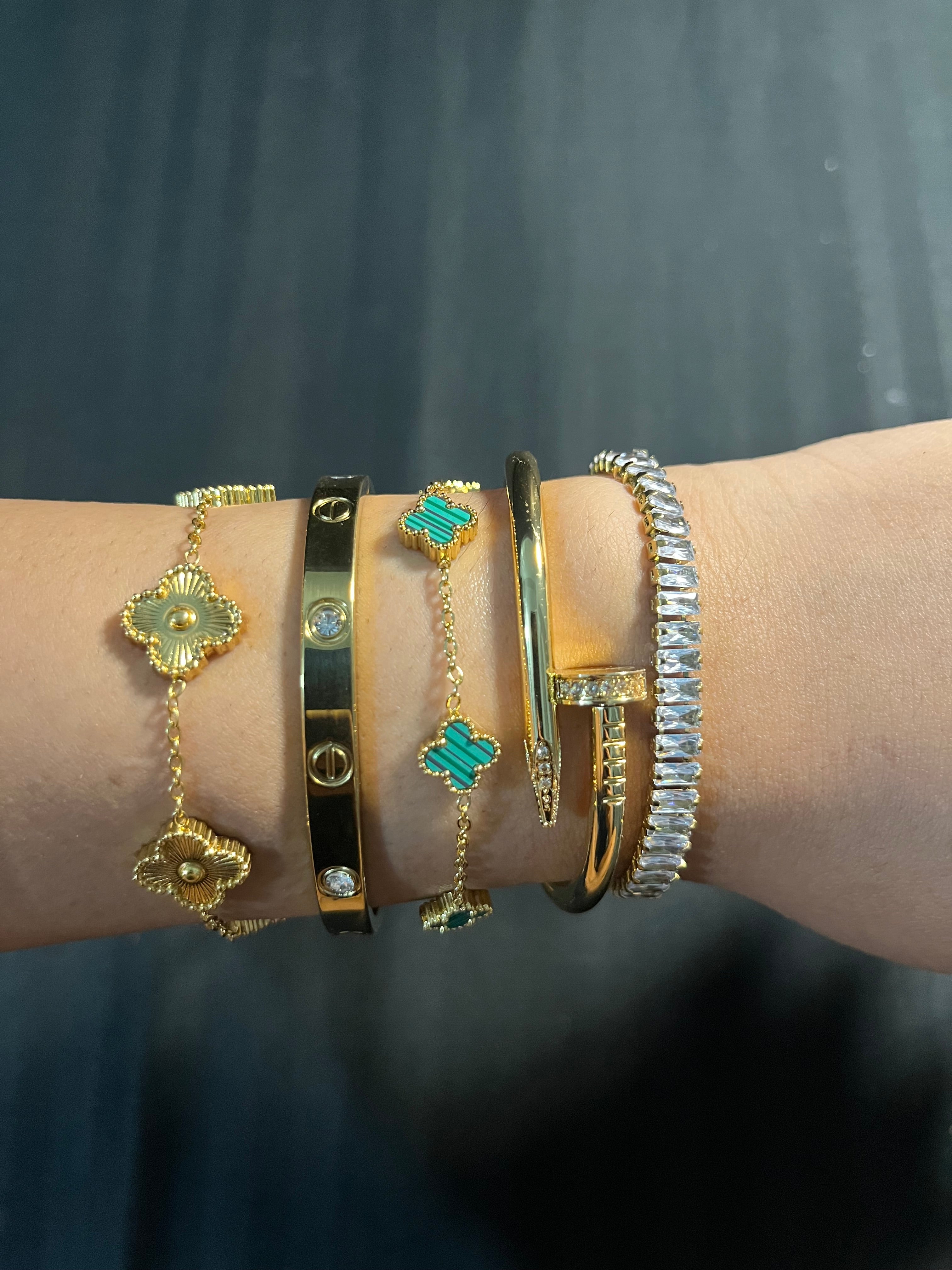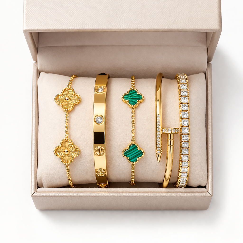 # Radiant Rush Stack Bracelets Master the art of wrist layering with this expertly curated bracelet collection, where each piece is engineered for harmonious stacking. Crafted with precision metalwork and refined detailing, these bracelets deliver luminous appeal whether worn solo or combined. The collection's thoughtful design allows you to build a personalized stack that reflects your aesthetic—from understated sophistication to commanding presence. Superior construction ensures durability through daily wear, while the versatile styling options make this an indispensable foundation for any jewelry wardrobe. Ideal for those who appreciate the nuance of intentional accessorizing and quality that endures.